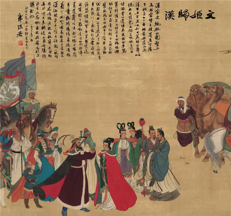 此跋一出,京华艺坛转动。盖因沫若乃文学界雄风,其题跋非独褒扬画技,更兼历史考证之功。诗中"胡笳十八拍"之典,既点蔡琰身世,又暗合期间精神,恰如《文心雕龙·时序》所言:"文变染乎世情,兴废系乎时序。"其时碰巧中苏交恶,民族相识飞扬,文姬归汉之题,正合家国情感,故能引起共识。